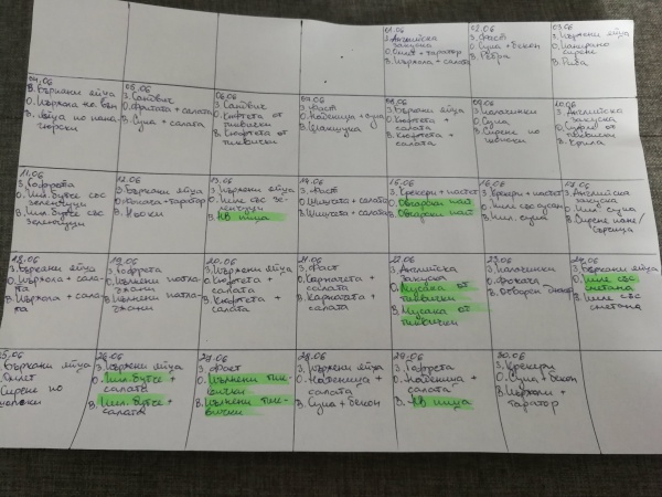 Седмица 1 – Направих график за храненето през месеца.