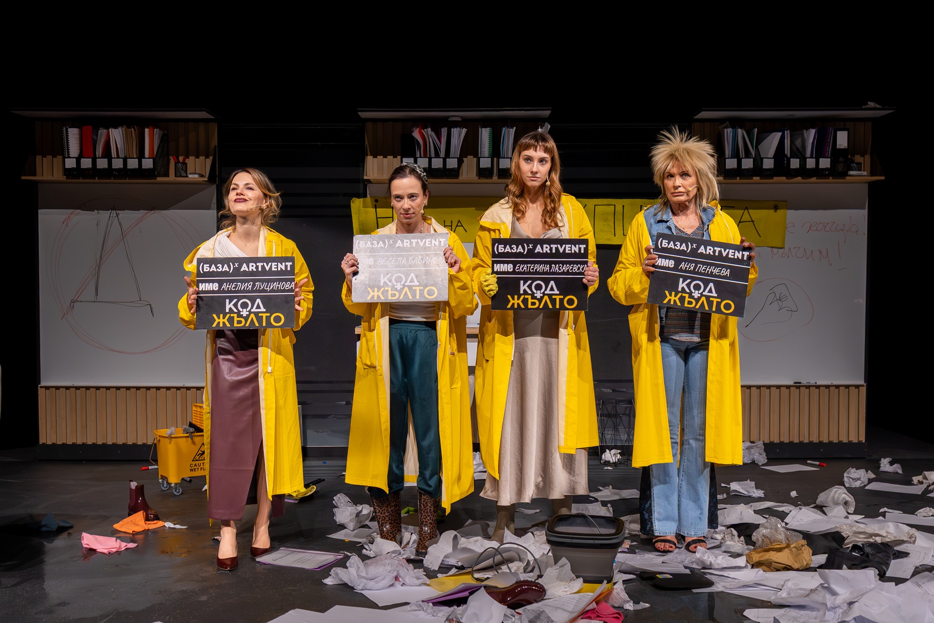 Публиката посрещна комедията „Код Жълто“ с много смях и петминутни овации на премиерата в Театър Artvent на дъждовния 2 октомври. Прогнозата за времето в този ден – предупредителен жълт код в почти цялата страна, символично се оказа и прогноза за театралната сцена - дъжд навън, порой от емоции в залата.